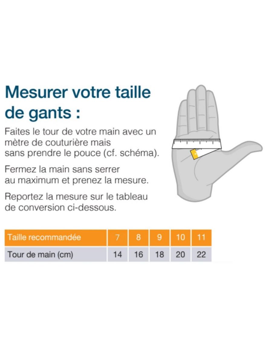 L'utilisation de sous-gants fins en coton est recommandée pour plus de confort et une meilleure hygiène.