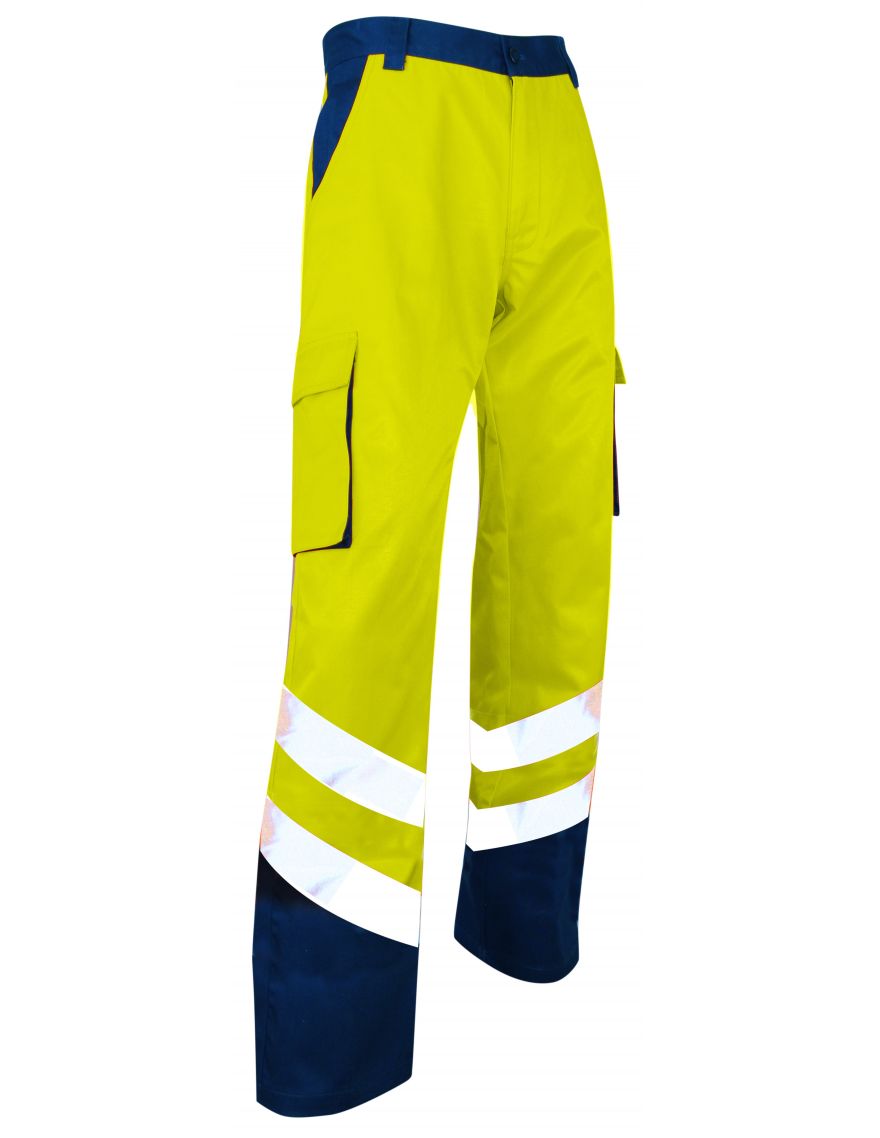Le pantalon de travail haute visibilité PROTECTION bicolore jaune fluo et bleu marine de la marque LMA vous permettra d'être visible pour les automobilistes lors de travaux sur le réseau routier. Il est zéro métal, et il possède de nombreuses poches utiles pour vos outils.